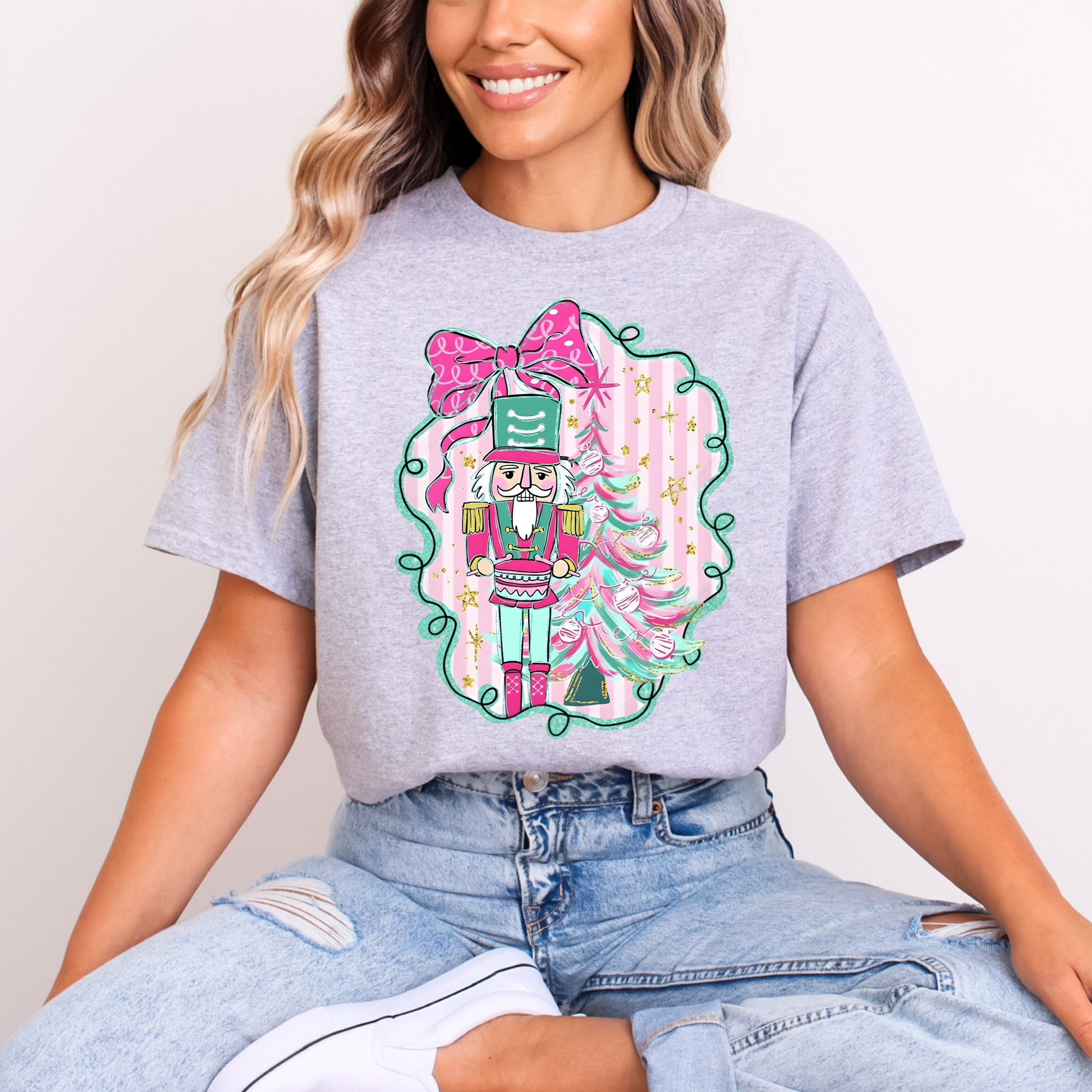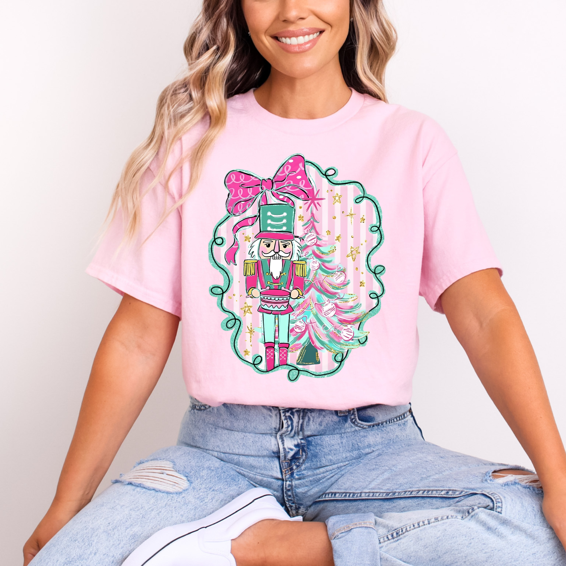 Pink bow nutcracker